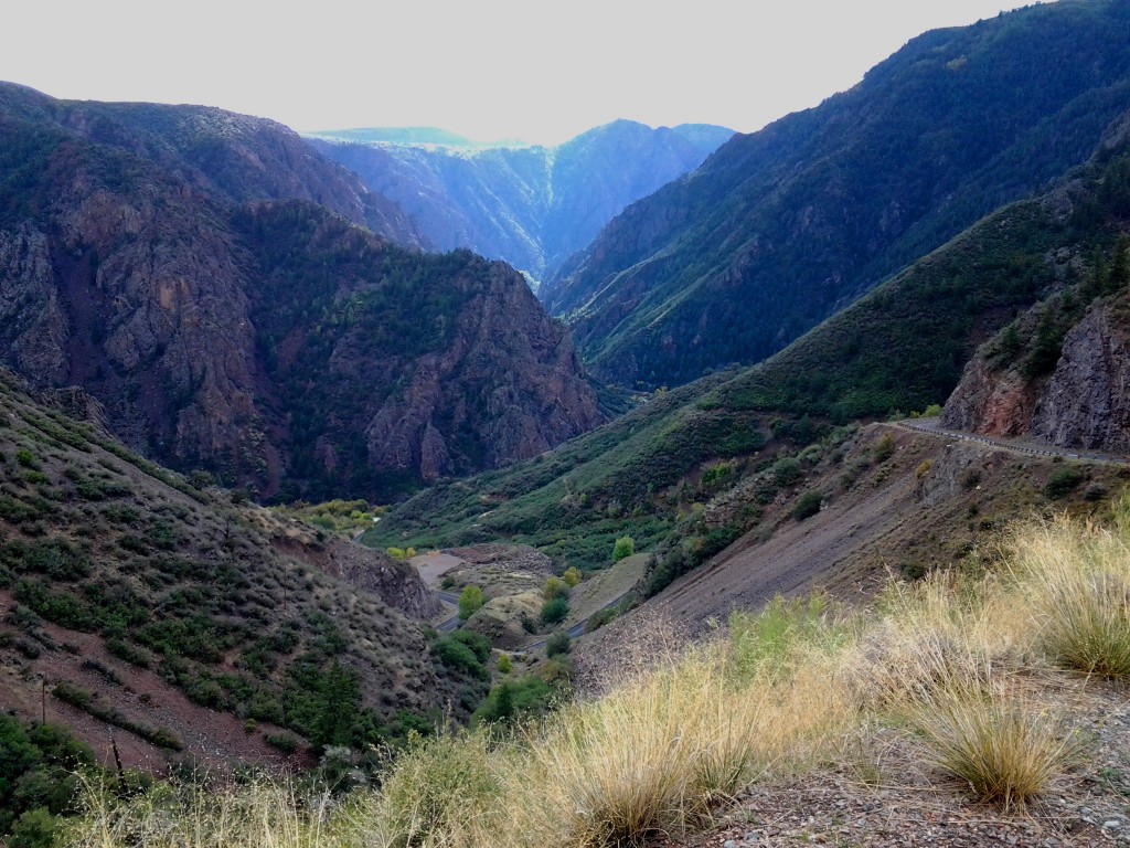 We approached the canyon from the east, driving along through the Curecanti National Recreation Area where we could see the placid, dammed Gunnison River beside the road. Surely that isn’t the river that carved a massive gorge?
