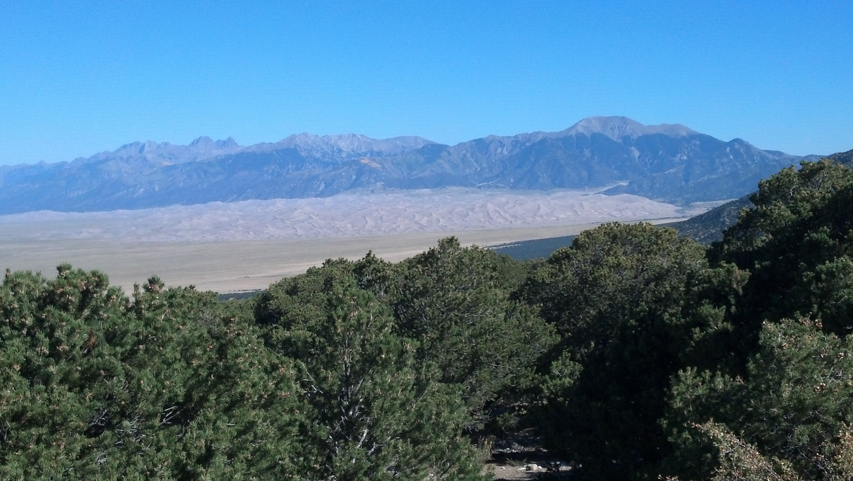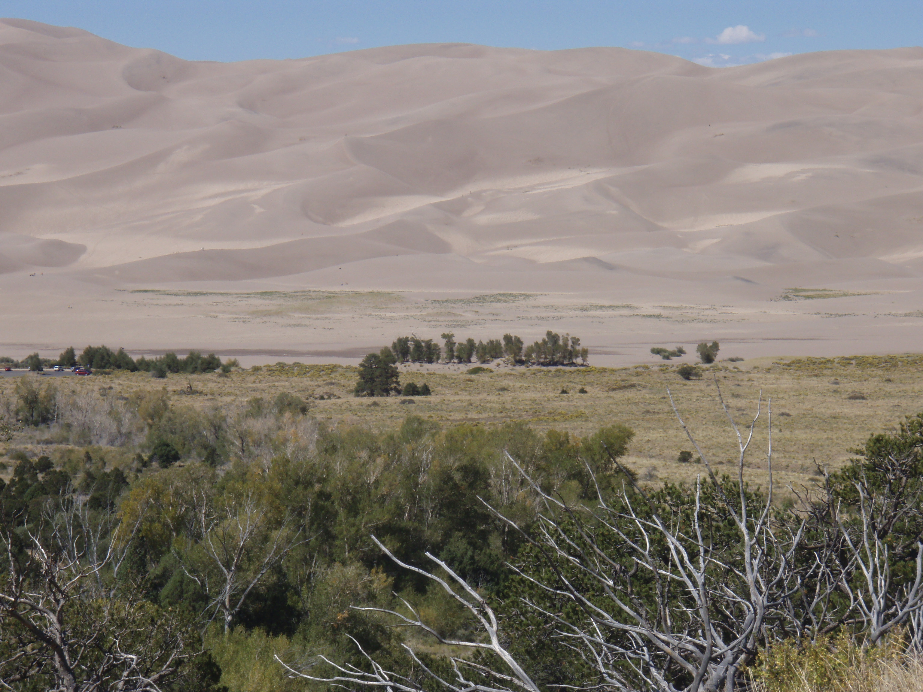 At Pinon Flats, the campground at Great Sand Dunes National Park, the towering dunes – some as high as 750 feet above the ground – stretch before you. Between the dunes and the campground lies wide, shallow Little Medano Creek – dry at this time of year except when it rains in the mountains. Then it can take a day or more for the water to flow down the mountainsides and trickle into the creek.