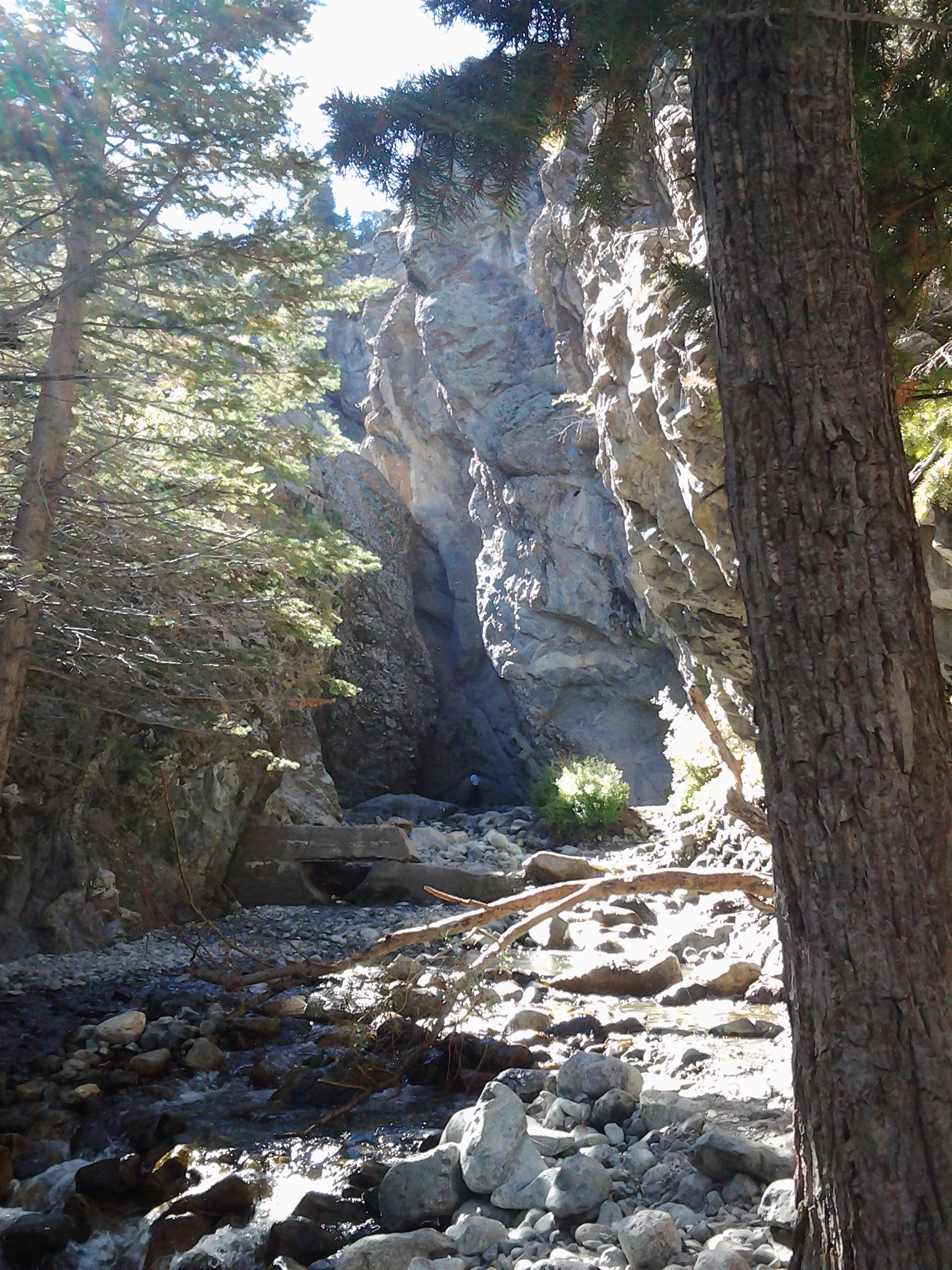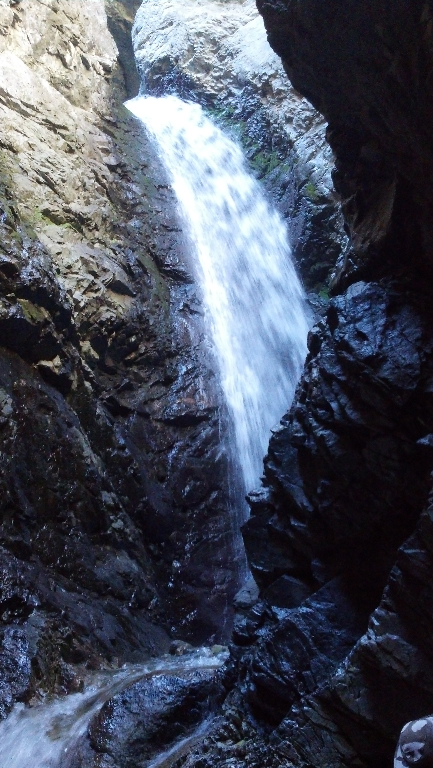 Once at the end of the trail we had to cross the stream three times and side step through a tall, narrow cave to view the falls. It was worth the effort.