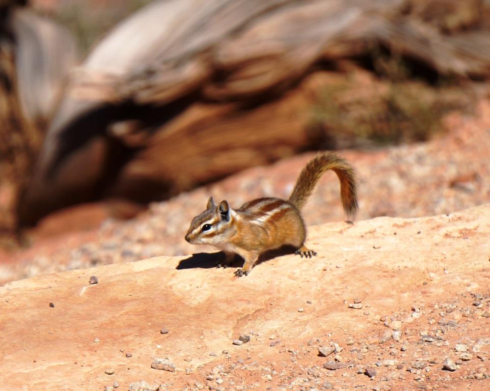 We also had a guest, a chipmunk that dashed around looking for a way to get near us. As cute as it was, we didn’t feed it. That didn’t stop him from trying to help himself. We caught him sneaking around behind us to try to snag food out of our pack but we were quicker than he was. He was moving on to the next hikers as we headed off.
