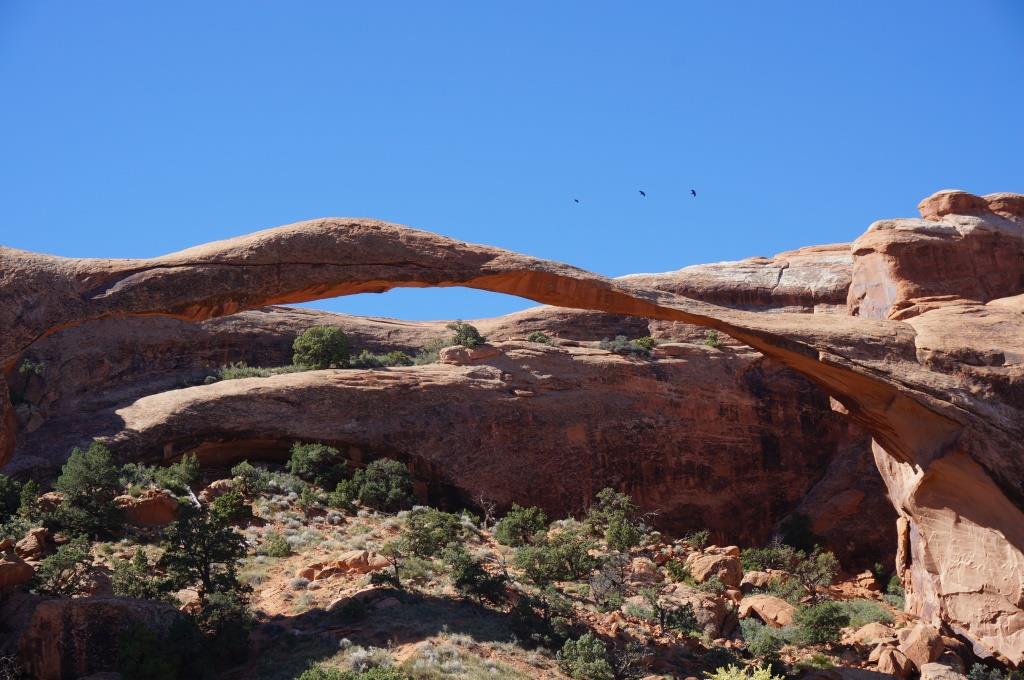 Our hike took us to six arches, the first being Landscape Arch, about a mile up the trail. Less intrepid hikers might stop there, but of course we didn’t. That’s us, the Intrepid Duo.