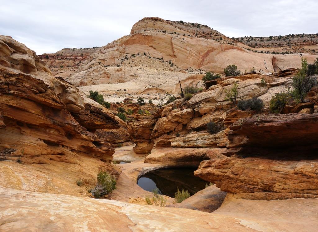 Once we reached the end of the Capitol Gorge Trail, we took a short side trail to an area called The Tanks. These were semi-permanent pools of water scattered among the slickrock.
