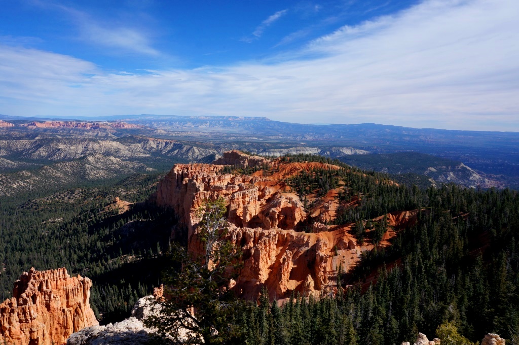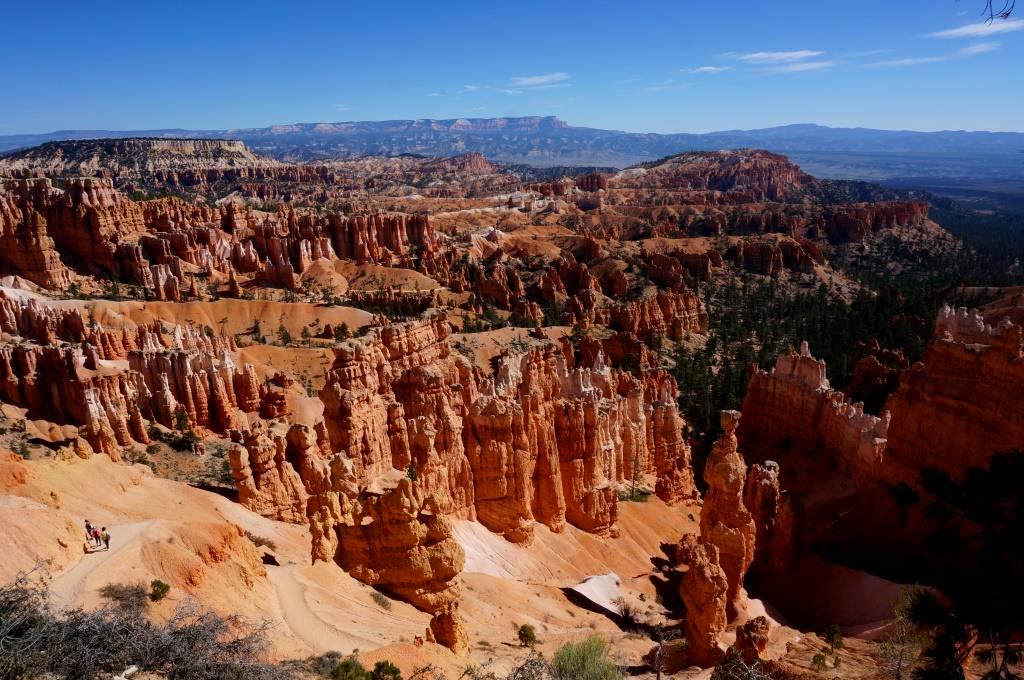 Bryce Point overview is absolutely incredible. There is a nice, easy to access, platform with railings and great views. The more adventurous can walk a short trail out on a fin of rock (some areas with no rails so hold onto those children) to a fenced and railed area where you feel as though you are hovering over the canyon itself. It is a dizzying look down for sure but a definite must-see view.