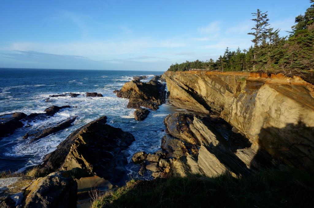 Looking north from this spot you can see the geology of the area. Great slabs of sandstone jut up out of the ocean where the tectonic plate was pushed up then eroded by the surf.