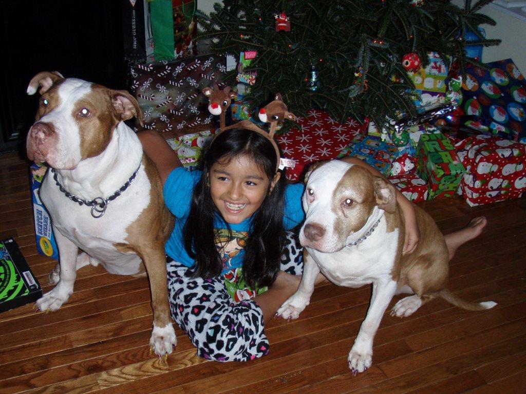 Aha! I heard some of you cringe at the words “pit bull”. Chip and Cocoa are both very good dogs. Chip is actually one of Cocoa’s puppies. They found him a good home as a tiny puppy but he wound up back at the pound when the (somewhat foolish) owner was told that her no-pet apartment did not allow dogs (well, duh – she thought she could hide him?) Our son bailed him out of the pound (several hundred dollars) and found him another good home. All was well for the next five years until Hurricane Sandy sent him to a shelter in Philadelphia and they detected a tracking chip in him with our son’s phone number (apparently put there by the first shelter). Long story short, our son drove to Philadelphia and bailed him out again (several hundred dollars). We searched online for his owner but he could have come from anywhere and we couldn’t find a lost dog listing for him. The shelters were shifting animals away from the devastated areas on the coast and there was no record of how he wound up in Philadelphia. The hunt began to find him a good home locally, but no luck. He’s a good dog, but he’s a big dog and since people do bad things to pit bulls, no random takers were considered. They had to be sure he would get a good, loving home and not some fighting pit. So, Chip has stayed and become Chloe’s snuggle buddy. He isn’t fond of the reindeer ears, princess tiaras and tu-tu’s that she puts on him but he takes it all in stride. His favorite girly game is tea party. He and Cocoa sit patiently in their tiaras waiting for the “tea” to be poured into their thimble size cups and the one little cracker to be laid on their plates. They sit drooling on the floor while they watch Chloe for the signal that they can eat before they slurp down the cracker. Cocoa is pretty good at getting her tongue into the tiny teacup for the water but Chip just doesn’t have that level of high society social skills. He sticks with the cracker… and maybe gets a little licky licky in on your cracker if no one is looking.