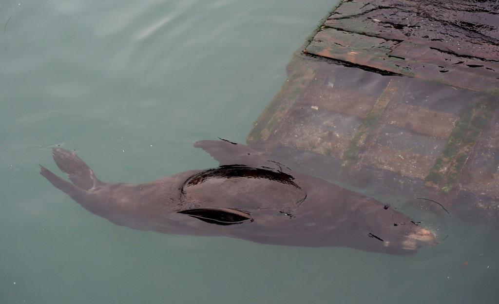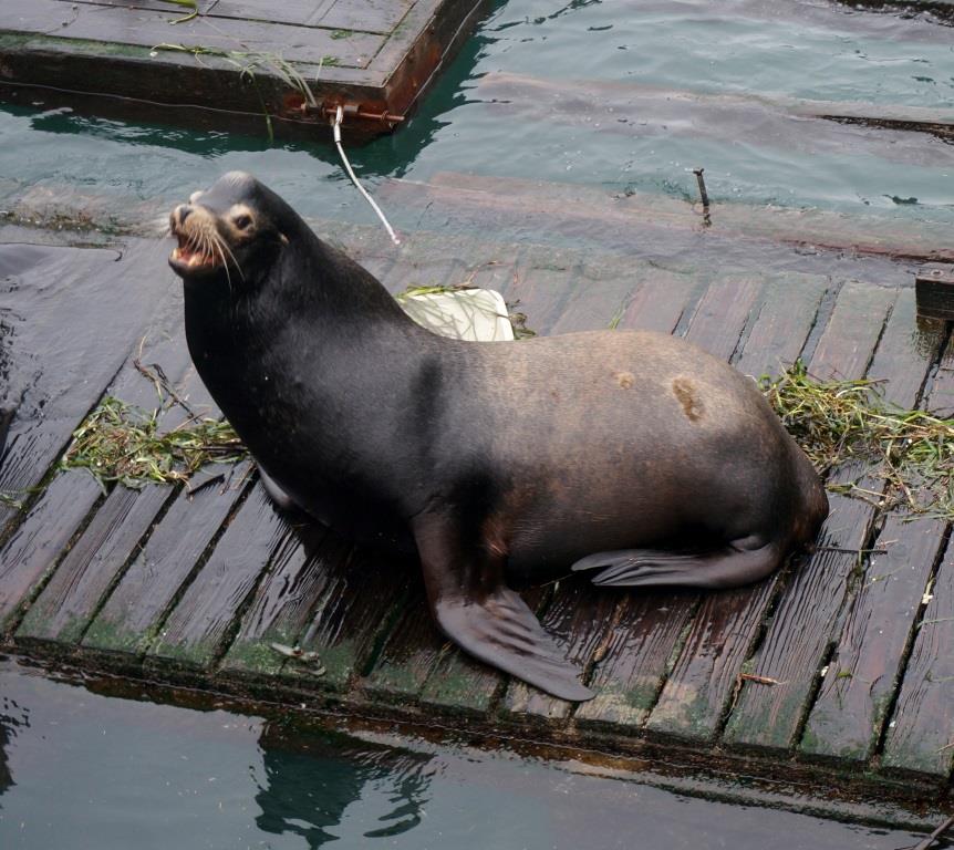 When we saw this next sea lion, we weren’t sure if he was alive or dead, until he poked his nose above the water, took a breath, and lay his head back under the water. He reminds me of our granddaughter Chloe’s dog, Chip, a 100 pound pit bull who loves to lie on his back and have his belly rubbed. I’m convinced Chip is part sea lion, except he doesn’t like to go out in the rain.