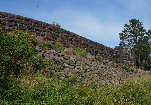 From the visitor center it was a short, hot, humid walk to the Gateway Plaza. The wall was built between 1936 and 1940 by the Civilian Conservation Corps (CCC) as a retaining wall for the parking concourse. Designed after a castle, it was 300 feet long, 15 to 20 feet high and 12 feet thick. I like castles.