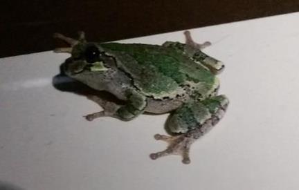 Tree frog on our rig. Greeted us when we returned home from an evening matchless fire program.