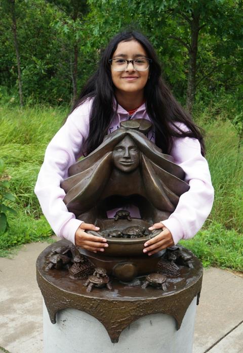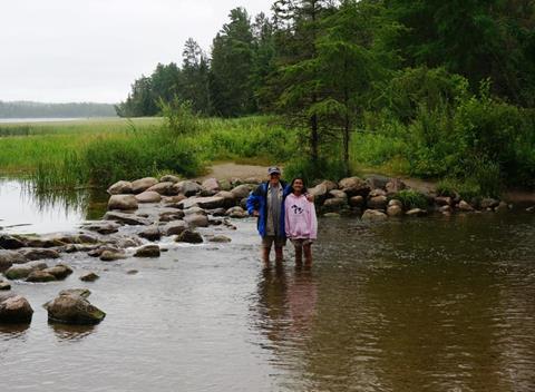 On the path to the headwaters we passed this really neat bronze statue of Caretaker Woman. The young lady hugging it is my granddaughter Chloe. The Ojibwe believe that women are the Caretakers of the Water. The woman in the sculpture is releasing a clutch of small turtles from a basket. Her hair symbolizes flowing water. The turtles symbolize the cycle of life.