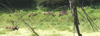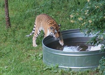 The big cats are usually lounged out but we caught this tiger testing the water – to drink? to jump in? just mesmerized by the ripples? We don’t know, he was still watching the water when we moved on.