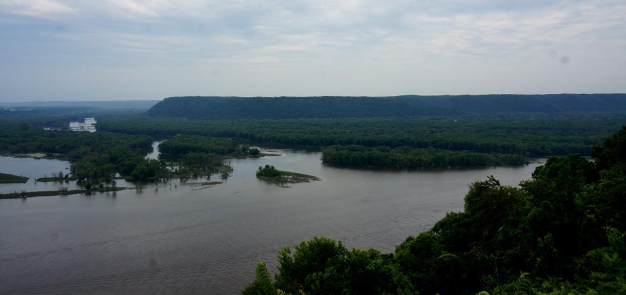 Another short hop south took us to Effigy Mounds National Monument. We rolled right into the visitor center with the rig and had no problem parking. It was a wickedly hot day once again. We wanted to do the 4 mile round trip hike to see the Marching Bear Group which has a lot of bear and bird mounds but the heat and steep trail were too much. We opted for a shorter, ranger led, 2 mile round trip hike to the Little Bear Mound Group and Fire Point overlook.
