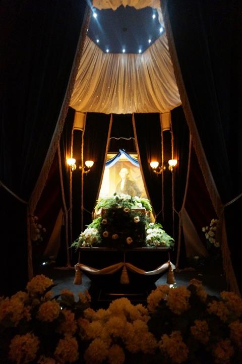 A final sobering exhibit was a recreation of Lincoln lying in state in the old Illinois capitol.