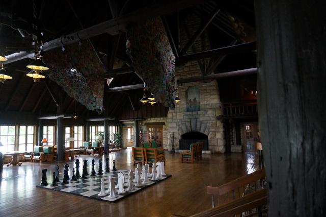 We had a very nice dinner at the lodge (with awesome dessert… which I ate as a snack before dinner) and we were surprised to hear that they get several tour buses in each day. Lucky for us only one rolled in while we were chilling at the lodge. We had a swarm of people for an hour or two then they were gone. The lodge is open to the public even if you are not staying there and the staff at the desk were very helpful. There is a beautiful patio with tables and chairs overlooking the river, comfy chairs and tables inside the lodge (with electric outlets in some spots), a huge fireplace, giant chessboard and more. There is also an indoor swimming pool for lodge guests but we couldn’t sneak a peek.