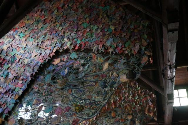 I was amazed at the quilted hangings they had in the main room. They were huge and gorgeous. It looked like hundreds of individual quilted leaves stitched together in a double curtain with a sheet of semi-transparent “water” extending from the bottom of one side. We could make out turtles, snakes, snails, dragonflies, fish, lily pads, spiders and more in the quilting. Absolutely stunning! We have friends that quilt so I took quite a few photos so I can send them along to them. It would have been nice to get closer (we left the telephoto lens at the rig) but I figured they’d throw us out if I started climbing chairs and tables so I behaved.