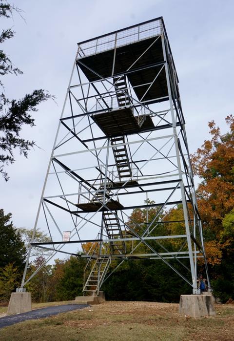 Our first hike took us to a overlook tower where we got a terrific view of the area surrounding Branson. We were told this would be a tough uphill hike. It really wasn’t. The “trail” was paved and it wasn’t that steep, maybe an 80 to 100 foot elevation gain over a quarter of a mile.