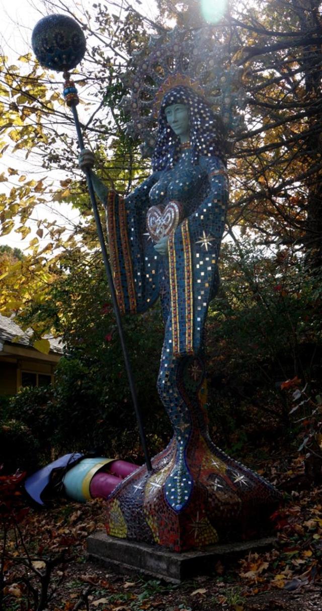 The town itself is pretty cool. They have a LOT of springs so you’ll be walking along (seems it is always uphill) on a street and there will be a stone outcropping with a spring and historic sign, then another house. I found it interesting that they didn’t blast into the rocks to build. The houses are built on the ridges and rocks and other rocks were used to fill in the low spots. Many perched on ledges are reached by steps. There are a lot of Victorian “Cottages” with all the gingerbread trim and bright colors. Many can be rented and they seem to do a good business with them. There were plenty of places to eat, drink and shop. They had artist studios, crystal shops, healing shops, an essential oil shop, outfitters, T-shirt shops, kite shop, souvenir shops, leather shops, hippie shops and more. It was very eclectic. We talked with a local couple that said it used to be mostly an artist colony type area but it is slowly sliding toward tourist junk and new age shops. We forgot to check out the glass chapel in the woods so if we are ever in the area, we’ll have to take the purple line up to that.