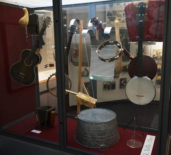 Acadians love their music. One display had quite a few musical instruments, many homemade, on display. Note the banjo made from an old cigar box and the upside down washtub.