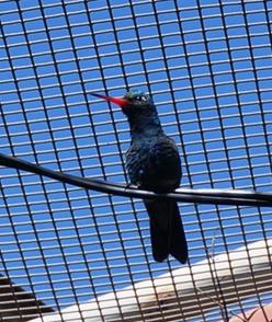 Caption: Hummingbird in aviary