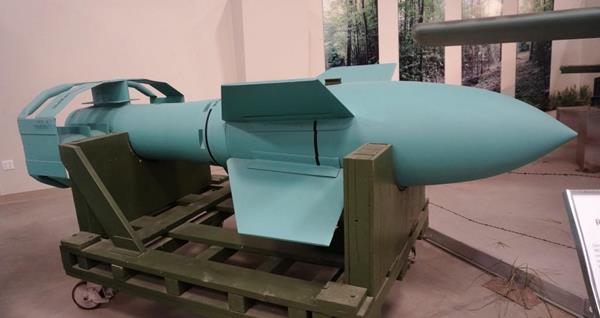 The museum exhibited a lesser known Nazi “wonder weapon”, the Fritz X radio guided bomb. The weapon was a standard armor piercing bomb with radio controlled tail fins and wings. After it was dropped the bombardier would visually guide the bomb to its target by radio control.