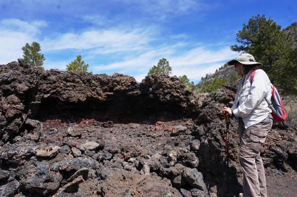 Holly studies spatter cone on Lava Flow Trail