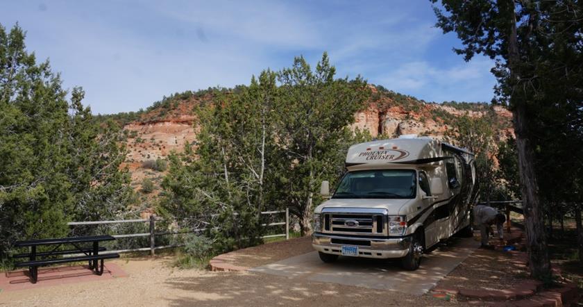 We managed to get one night in an RV spot at Best Friends Animal Sanctuary – they are booked MONTHS in advance. It is beautiful there. The price is $50.00/night which is comparable to full hook up sites in Kanab and is downright cheap if you are a Best Friends member ($30.00/night for members; membership is $25/year). They only have two spots available to rent right now but four more should be opening by mid-June. We are already on the wait list for one of the new ones for two weeks in July with the granddaughter. There are NO campground type amenities except a clean, beautiful location with concrete pad, picnic table and full hook ups. No restrooms, no planned activities, no camp hosts (you check in at the welcome center). They have a few trash cans in the loop but that is it. It is close to Highway 89 and a mile from the Best Friends Welcome Center.