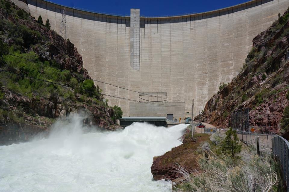 We were lucky to be there when they simulated the spring runoff. It was amazing! Over the course of the first day the dam operators gradually ramped up the flow through the generators until they were at maximum power. At that point 4,500 cfs (cubic feet per second) of water flowed out the bottom of the dam. That’s a lot of water. However, they weren’t done yet. The next day they started pushing water through their two overflow/jet valves. By the end of that day, they were shooting another 4,000 cfs of water in giant rooster tails. That’s a total of 8,500 cfs blasting down the river. It was a sight to behold.