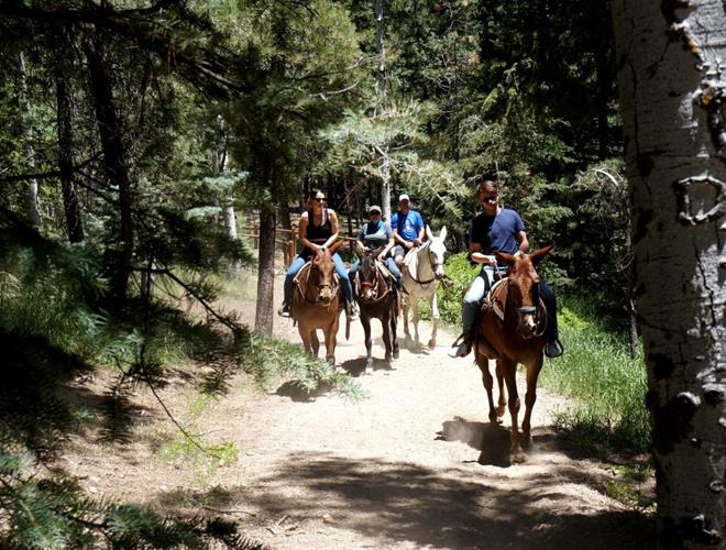 Returning to the main visitor area we spent some time in the small Visitor Center and gift shop. Then we headed back to the car to explore some of the other areas of the park. Our first stop was the parking area for the North Kaibab trailhead. We were in luck as we ran across a group that had just begun a trail ride. In this steep, rugged terrain, you don’t ride horses. You ride mules. They may be stubborn animals and hard to get going but they are much more sure-footed than horses.