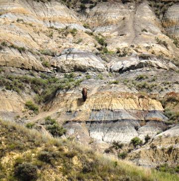 ![]() Bison Gracefully Lumbering Down Cliff |