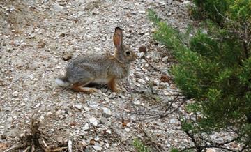 We saw hundreds of Bison… and they wandered all around our car. We saw dozens of wild horses… and they wandered all around our car. We saw two beautiful pronghorn… and they hung out right next to our car. We saw hundreds of prairie dogs… and many were within a few feet of our car. We saw a bald eagle, numerous hawks, a coyote (who ran through a prairie dog town, crossed the road in front of our car, and ran through the other half of the prairie dog town snagging its dinner along the way), and when we rolled back into camp, a cute little cottontail bunny hung out with us. This was all in about three hours. It was AMAZING!