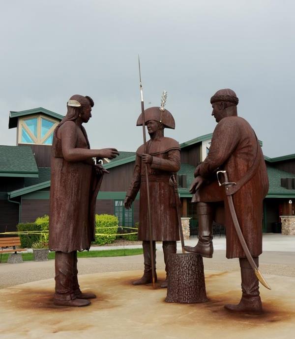 Sculpture of Lewis and Clark with Mandan Chief Sheheke-shote