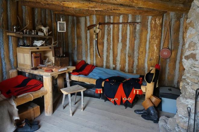 Fort Mandan was triangular in shape, with high walls, and a gate facing the Missouri River. The interior included lodging for the men, storage rooms for the expedition’s supplies, and a blacksmith shop. Lewis and Clark shared a room. Construction of the fort began on November 2, 1804 and was occupied until April 6, 1805. The park has reconstructed Fort Mandan on dry land and furnished it as it would have been so long ago. It was an excellent tour that we highly recommend taking.