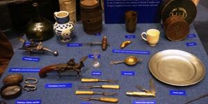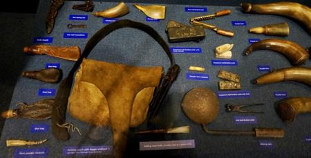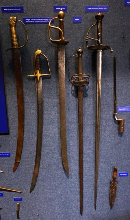 They also had a large collection of weapons and accoutrements including swords, sabers, pikes, muskets, bayonets, powder horns, musket balls, and cannon balls.