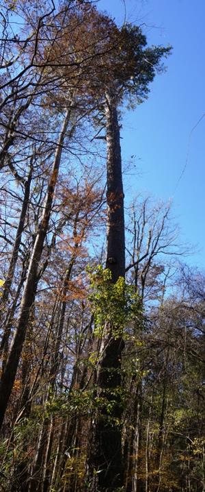 We met another couple at a Cedar Creek overlook and they took us to a massive loblolly pine. While it’s unusual to find loblollies in wetlands, they can tolerate the soggy conditions. The one we saw had to be well over 150 feet tall, so I’d say that’s true.