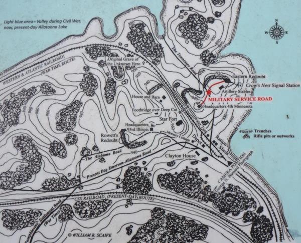 The Western & Atlantic Railroad ran from Chattanooga, Tennessee to Atlanta, Georgia. As the Union army fought its way from Chattanooga to Atlanta in 1864, this railroad was its lifeline. Protecting the railroad was critical to the Union army’s success. One chokepoint was at Allatoona Pass where the railroad traveled through a very steep, narrow gorge.