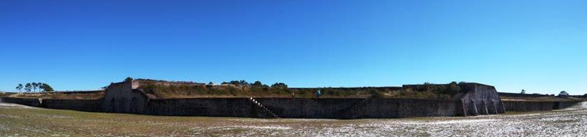 While the fort’s thick brick walls protected it from land and sea-based artillery fire, the fort’s design also protected it from attack on land. The main architectural feature for that purpose was the counterscarp (see left side of map above). Attackers had to scramble up, over, and down the counterscarp only to be faced with a charge over open ground to the fort itself.